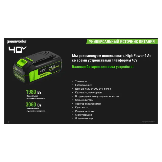 Отзывы о Аккумулятор Greenworks High Power G40HP4 40V 4 А.ч