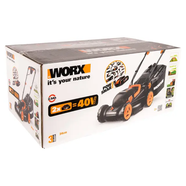 Аккумуляторная газонокосилка WORX WG779E.1 с двумя аккумуляторами 40В 4 АЧ и двойным ЗУ 2X2A - это отличное решение для быстрой обработки небольших и средних участков. Благодаря использованию двух аккумуляторов WORX Powershare и ширине скашивания 34 см, эта техника способна обработать площадь свыше 280 м2.