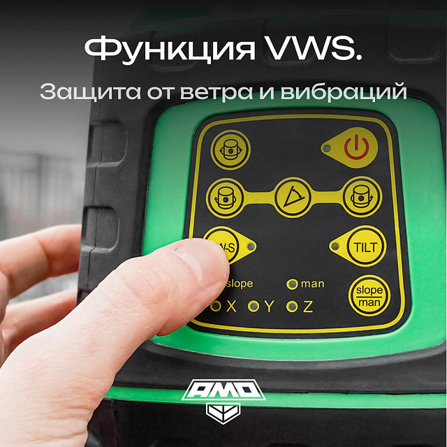 Ротационный лазерный нивелир AMO ROTOR 300G проецирует вертикальную и горизонтальную плоскости с разверткой на...
