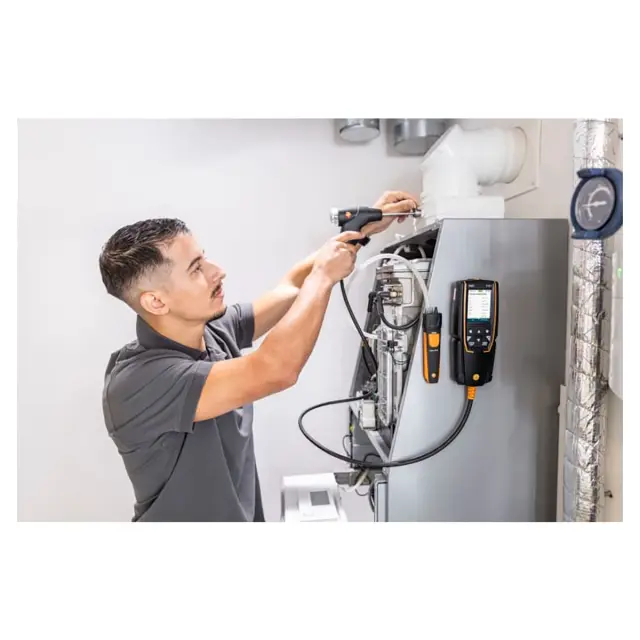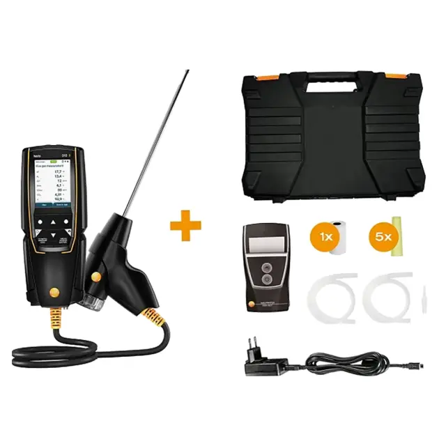 - Газоанализатор Testo: сам прибор, который обеспечивает точные измерения концентрации различных газов, что критически важно для настройки и проверки котлов и горелок.