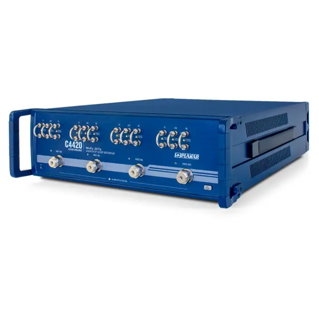 Анализатор цепей векторный Planar C4420 – топовая модель высокопроизводительной линейки КОБАЛЬТ, которая снабжена четырьмя каналами с рабочей полосой частот от 100 кГц до 20 ГГц и работает под управлением внешнего компьютера. Обеспечивая наивысшую скорость измерений и обладая лучшими системными характеристиками, с поддержкой повышения функциональности с помощью опций, прибор может использоваться для решения сложных измерительных задач. Особенностью данного семейства является возможность подключения внешних преобразователей, что позволяет с помощью опциональных модулей расширения серий TFE и FEV увеличивать верхний предел полосы пропускания для измерений в микроволновом диапазоне.