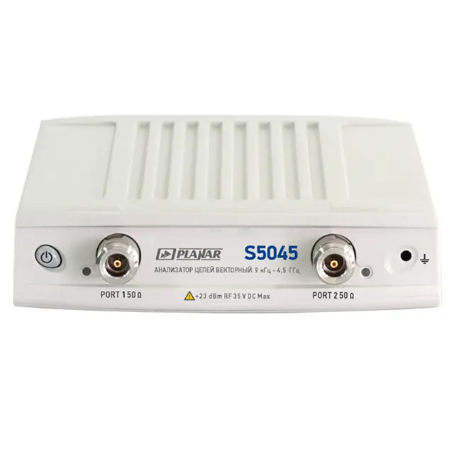Специально разработанный для применения в промышленной отрасли, векторный анализатор Planar S5045 способен выдерживать постоянное напряжение на измерительных портах номиналом до 35 В. Оба порта выполняют функции источника тестового сигнала и приемника-измерителя, что исключает необходимость выполнения переподключений испытуемого устройства при измерении его S-параметров. Прибор поддерживает несколько типов сканирования по частоте и по мощности, включая сегментный, захватывая за один цикл до 200 тысяч измерительных точек. Возможно представление получаемых результатов в полярных или прямоугольных координатах, либо в виде диаграммы Вольперта-Смита, с поддержкой режима автомасштабирования. С целью оптимизации измерений реализовано несколько вариантов фильтрации. Поддержка функции маркеров упрощает считывание и анализ результатов.
