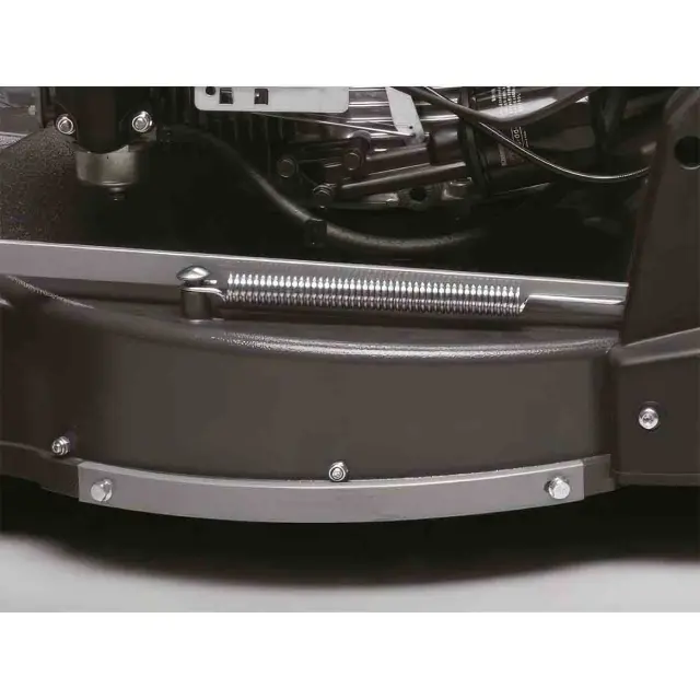 Мотор косилки отличается высокой износостойкостью и компактностью. Он легкий и имеет верхнее расположение клапанов, что обеспечивает более эффективную работу. Кроме того, благодаря чугунной гильзе цилиндра, этот двигатель обладает повышенной прочностью. Для удобного запуска модель оснащена ручным стартером с системой автоматической декомпрессии, что значительно облегчает пуск и уменьшает нагрузку на пользователя.
