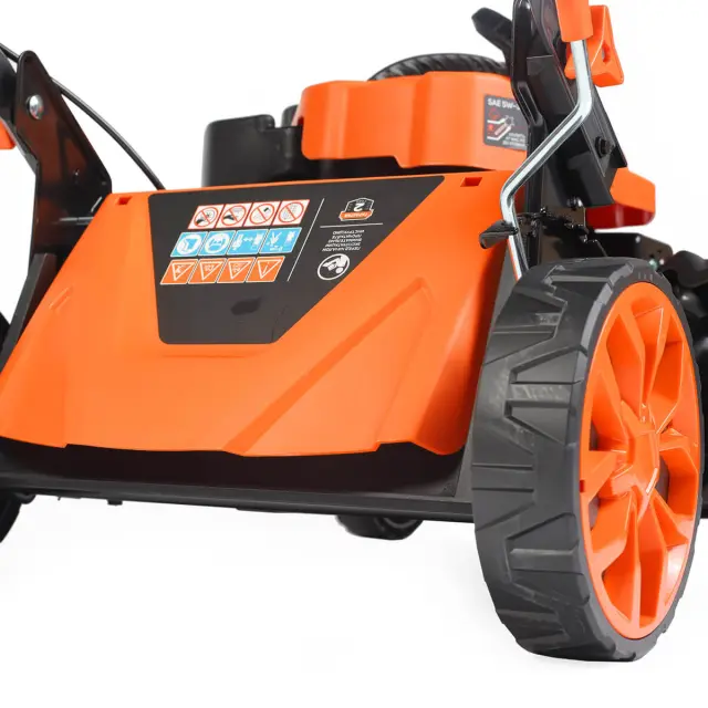 Техника скашивает полосу шириной 46 см, что позволяет быстро подстричь даже большой газон. Вы также можете выбрать один из 7 режимов высоты кошения в зависимости от ваших предпочтений и требований. Регулировка осуществляется одним центральным рычагом, что делает процесс очень удобным.