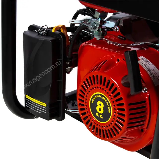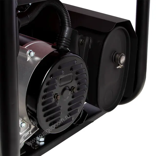 Медная обмотка альтернатора обеспечивает лучшую электропроводность и долговечность по сравнению с алюминием. Кроме того, металлическая труба, огибающая весь корпус, создает прочную защитную раму, которая предотвращает механические повреждения при перевозке или работе на строительной площадке.