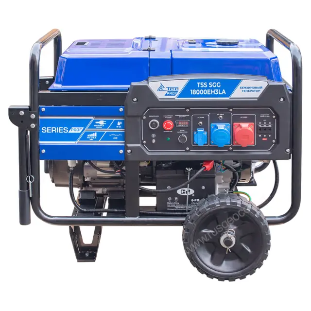 Бензиновый генератор TSS SGG 18000EH3LA 60L (190069) - модификация самой мощной трехфазной модели бренда, ориентированная на жесткие условия эксплуатации и длительную непрерывную работу. Номинальные 17 кВт позволяют полностью обеспечить электроэнергией жилой или рабочий объект с сетью 380 В, установка подойдет для работы на стройплощадке, в мастерской или на производстве. К ней также можно подключать однофазные приборы и электроинструменты, для которых доступно около трети мощности.