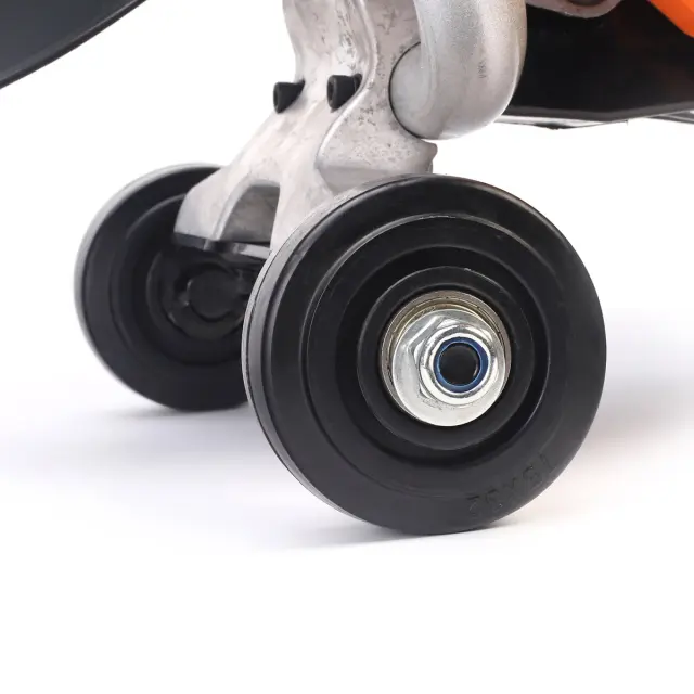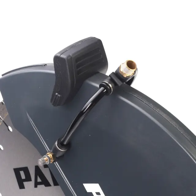 Поддерживая режимы сухого и мокрого резания, бензорез оборудован системой водоподачи. Она снабжена стандартным штуцером для подключения к устройству водоподвода и обеспечивает охлаждение оснастки в процессе работы, одновременно снижая образование пыли при резании. Предусмотрена возможность использования режущих дисков, алмазных и абразивных, с диаметром посадочного места 20 и 25,4 мм. Дополнительные опорные колеса из комплекта поставки, которые, при необходимости, можно быстро снять, упрощают выполнение работ по резанию с одновременным смещением инструмента, таких как обрезка бордюрных камней.
