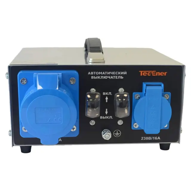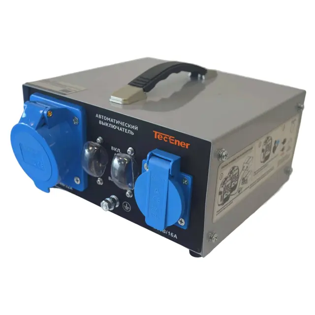 Блок параллельной работы S TecEner позволяет объединять мощность двух мобильных генераторов, поддерживающих соответствующий режим работы, обеспечивая питание нагрузок с максимальной суммарным энергопотреблением до 9,9 кВт, без задействования более дорогих электроустановок, с большей энергоотдачей. Изделие снабжено стандартными однофазными розетками на 16 А и 32 В, обеспечивая возможность прямого подключения бытовых и силовых потребителей переменного тока, исключая необходимость использования переходников. Устройство выполнено в компактном прямоугольном корпусе, с ручкой в верхней части – для удобства переноски.