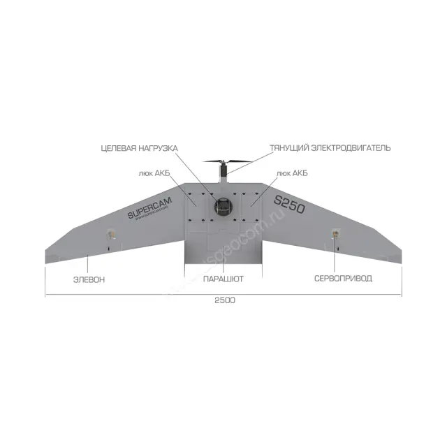 - 1 Беспилотный самолет Supercam S250 (цвет БВС серый или оранжевый. БВС может быть окрашен в другой цвет по согласованию с Заказчиком), поисковый GSM-маяк.