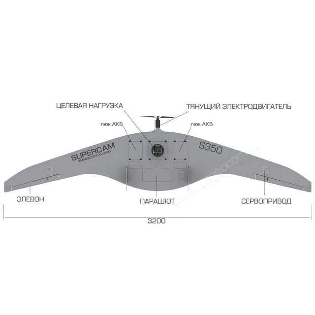 - 1 Беспилотный самолет Supercam S350 (цвет БВС серый или оранжевый, поисковый GSM-маяк)