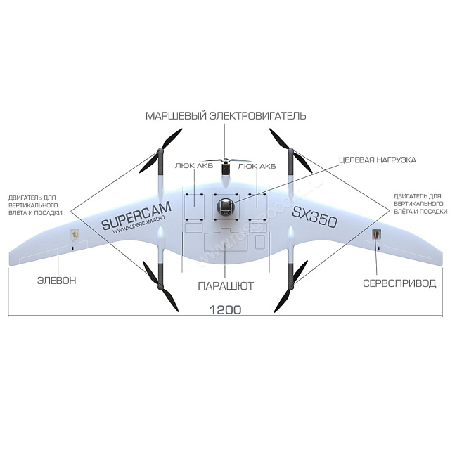 - 1 Беспилотный самолет Supercam SX350 (цвет БВС серый или оранжевый, поисковый GSM-маяк)