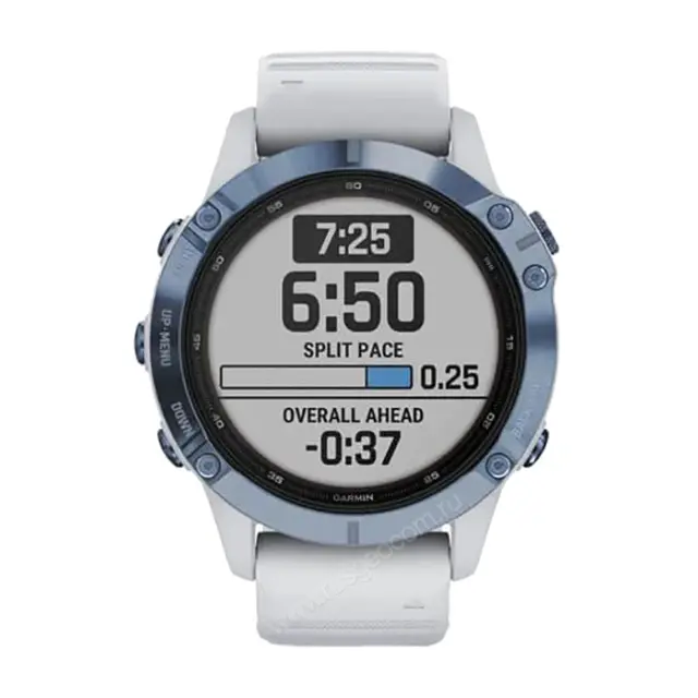 Часы Garmin Fenix 6 Pro Solar синий минерал с белым ремешком - это премиальная модель с расширенными навигационными, спортивными и смарт-функциями. Как и другие топовые устройства из различных линеек бренда, часы поддерживают бесконтактную оплату Garmin Pay, воспроизведение музыки и оборудованы множеством полезных датчиков.