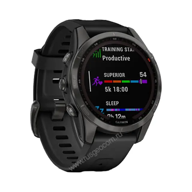 Часы Garmin Fenix 7S Sapphire Solar титановый угольно-серый DLC с силиконовым ремешком