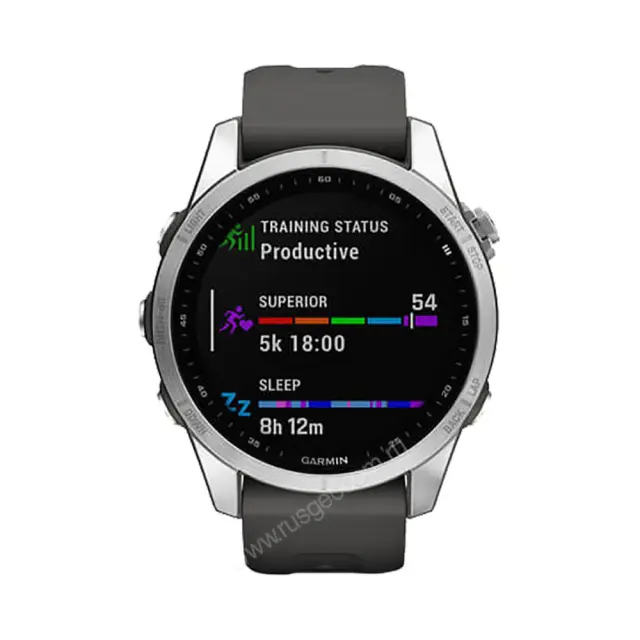 Часы Garmin Fenix 7S серебристый с графитовым силиконовым ремешком