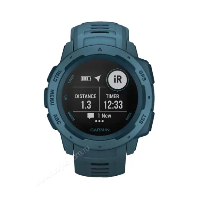 Одно из важных отличий линейки Instinct - широкая палитра оригинальных расцветок, в которую входит модель часов Garmin Instinct с корпусом и ремешком благородного бирюзово-синего цвета.