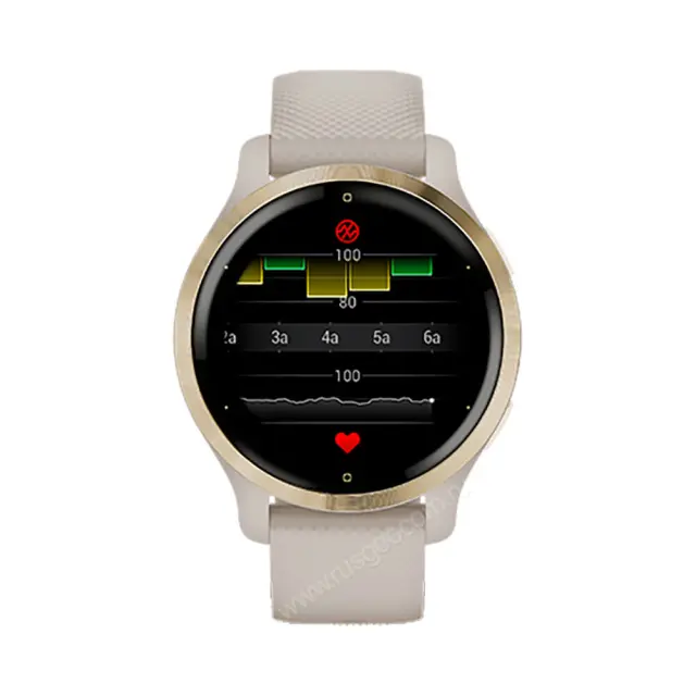 Функция Health Snapshot - выполните 2-минутную сессию для записи основной статистики, включая частоту пульса2, вариабельность частоты пульса, пульсоксиметрию3, дыхание и стресс. Затем составьте отчет с этими данными с помощью приложения Garmin Connect на совместимом смартфоне. Наблюдение за энергией Body Battery - наблюдайте за вашими уровнями энергии в течение дня, чтобы определить лучшее время для занятий и отдыха. Пульсоксиметр - с помощью пульсоксиметра3 вы можете проверять уровень насыщения крови кислородом в любое время дня, а также во время ночного сна. Эти данные помогут вам понять, насколько хорошо организм усваивает кислород. Отслеживание стресса - эта функция поможет определить, каким был ваш день – спокойным, сбалансированным или полным стресса. Если часы определят высокий уровень стресса, вам будет предложено выполнить короткое дыхательное упражнение. Отслеживание женского здоровья - с помощью приложения Garmin Connect можно отслеживать менструальный цикл или беременность. Записывайте симптомы, получайте рекомендации по упражнениям и питанию и т.д. Вы можете даже просматривать и записывать данные на часах, используя специальное приложение для отслеживания женского здоровья. Отслеживание водного баланса - записывайте ежедневно потребляемое количество жидкости и получайте напоминания о том, что пора попить. Устройство позволяет использовать автоматическую цель по водному балансу, которая будет корректироваться в зависимости от интенсивности выделения пота во время нагрузок. Слежение за дыханием - наблюдайте за вашим дыханием в течение дня, во время сна, а также во время дыхательных упражнений и занятий йогой. Баллы сна и расширенное наблюдение за сном - получайте баллы, отражающие качество вашего сна, и советы по улучшению сна. Устройство позволяет отслеживать различные фазы сна, частоту пульса, стресс, пульсоксиметрию и дыхание. Пульсометр на запястье - устройство непрерывно измеряет частоту пульса2 и предупреждает вас о слишком высокой или слишком низкой частоте пульса в состоянии покоя. Кроме того, пульсометр позволяет определять интенсивность ваших занятий (даже во время плавания). Дыхательные упражнения - если вы хотите расслабиться или сконцентрироваться, попробуйте выполнить дыхательное упражнение. Часы отслеживают уровень стресса и дыхание, чтобы вы лучше могли понять, как вы дышите. Спортивный возраст - эта функция использует ваш реальный возраст, продолжительность еженедельных активных занятий, частоту пульса в состоянии покоя и BMI (индекс массы тела) или процент телесного жира4 для оценки вашего "Спортивного возраста". Таким образом, вы можете узнать, является ли ваш организм моложе или старше истинного возраста. Устройство предложит советы по снижению "Спортивного возраста". Анимированные экранные тренировки - часы включают предзагруженные анимированные тренировки (кардио, силовые, йога, пилатес и высокоинтенсивные интервальные тренировки (HIIT)). Можно загрузить дополнительные тренировки из приложения Garmin Connect. Встроенные спортивные приложения - отслеживайте ваши спортивные занятия с помощью более 25 предзагруженных тренировок для закрытых помещений и свежего воздуха с GPS (ходьба, бег, велоспорт, плавание в бассейне, гольфа и прочее). Улучшенные силовые тренировки - этот детальный профиль занятия позволяет вам 