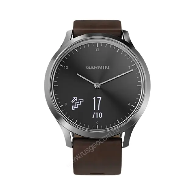 Garmin Vivomove HR серебряные с темно-коричневым кожаным ремешком - смарт часы