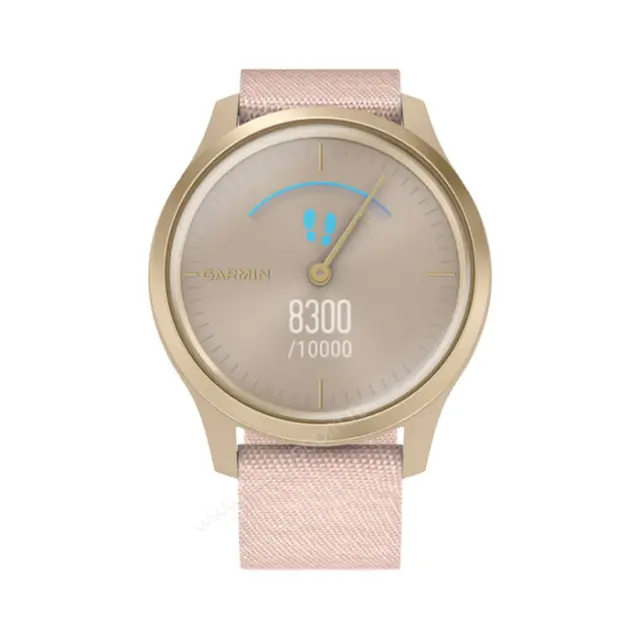 Часы Garmin Vivomove Style светло-золотистый с розовым плетеным нейлоновым ремешком