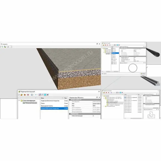 Реализовано создание информационной модели объекта как набора трехмерных тел по слоям дорожной одежды и земляного полотна дороги. Экспорт производится согласно настройкам схемы соответствия 3D-объектов. В результате экспортируются следующие типы элементов: ПТО, ЛТО, ТТО, триангуляция (проекты План генеральный); дорожные знаки, точечная, линейная и площадная разметка (проекты организация движения План ОДД); 3D-тела (конструкция трассы дороги, модели из файлов IFC, ссылки на которые хранятся за ТТО).