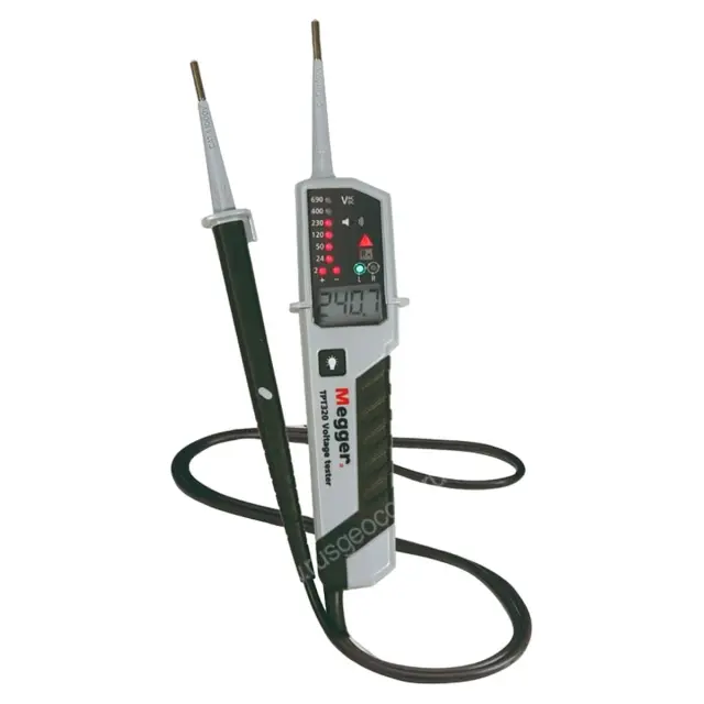 | Дисплей | Оптическая 3-значная индикация, ЖК/ 8 красных светодиодов для напряжение и полярности/ 2 зеленых светодиода указания вращения фазы/ 2 красных светодиода для целостности и индикации опасного напряжения |