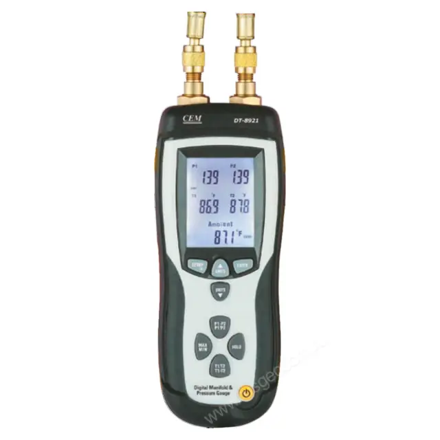 Дифференциальный цифровой манометр CEM DT-8921 способен измерять давление в диапазоне от -14 до 500 psi, а также температуру от -60 до +537 °C с помощью термопары типа К. Такой широкий диапазон позволяет использовать устройство в самых различных условиях, будь то в лаборатории, на производственном предприятии или в полевых условиях.