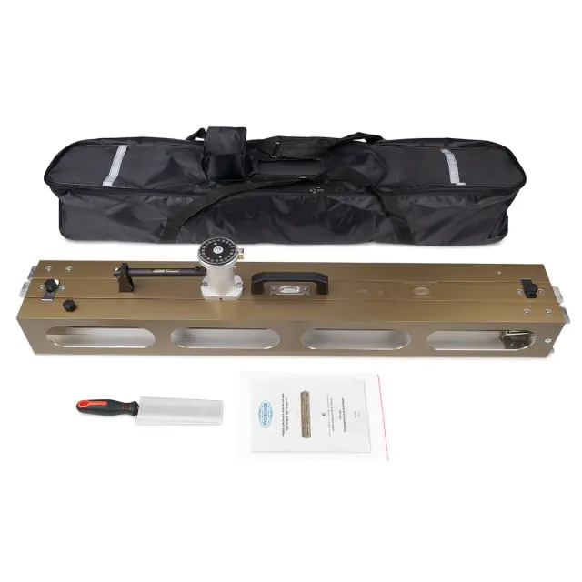 Рейка РДУ "Кондор" от компании производителя Русгеоком — трёхсекционный инструмент для оценки неровности дорожного полотна, измерения крутизны откосов, насыпей и выполнения аналогичных задач в дорожном строительстве. Оборудована клиновым промерником для замеров просветов. Внесена в Госреестр, что позволяет применять её в госпроверках и оформлении официальной документации.