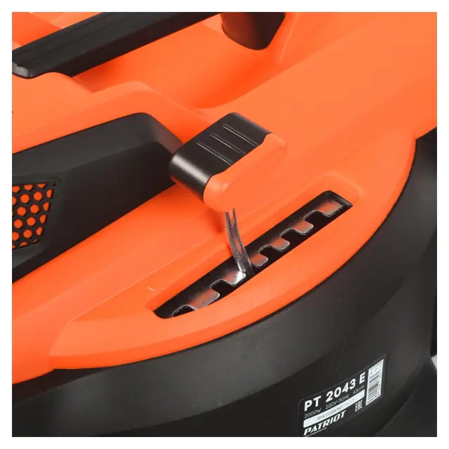 Одна из важных особенностей этой модели - большие колеса, которые обеспечивают отличную маневренность и проходимость. Это особенно полезно, если на вашем газоне есть препятствия, такие как клумбы или теплицы. Вы сможете легко управлять газонокосилкой Patriot PT 2043E даже на сложном рельефе и в труднодоступных местах. Благодаря большим колесам с выраженным протектором, эта модель справляется с кочками и неровностями без проблем. Кроме того, шины из пластика не оставляют следов на газоне, что делает агрегат еще более удобной в использовании.