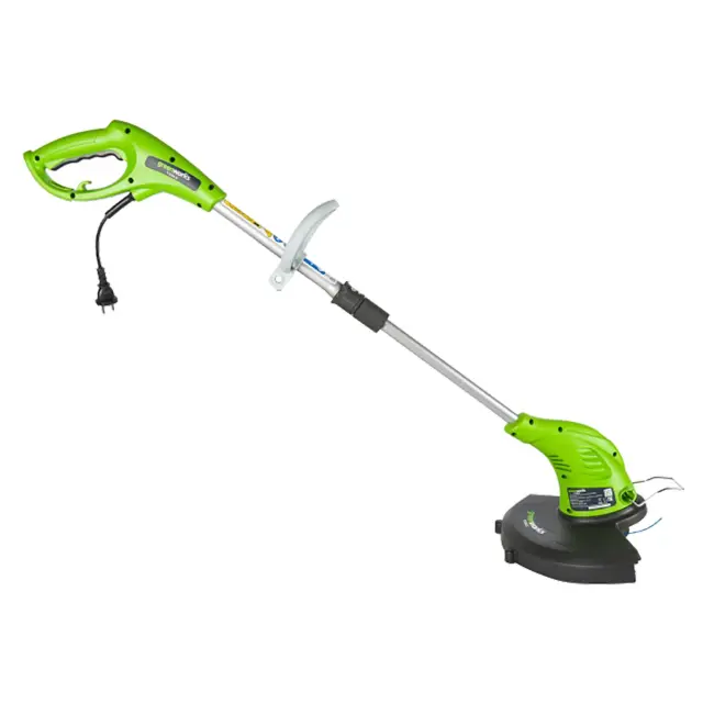 Электрический триммер Greenworks GST5033 - инструмент бытового класса, предназначенный для ухода за газонами, очистки придомовых территорий от зарослей травы и подрезки молодой поросли. По сравнению с колесными газонокосилками мотокоса отличается большей мобильностью и маневренностью, позволяя работать в труднодоступных местах, на неровном грунте, а также близко к деревьям, оградам, стенам и другим препятствиям. За счет сетевого питания устройство характеризуется низкой эксплуатационной стоимостью, исключая необходимость тратить средства на приобретение топлива и смазочных материалов.