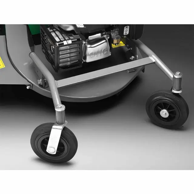 Передние поворотные "рояльные колеса" повышают устойчивость и маневренность. Колеса, вращающиеся на 360 градусов, позволяют машине свободно перемещаться между деревьями и кустарниками, обеспечивая высокую проходимость даже на сложных участках.
