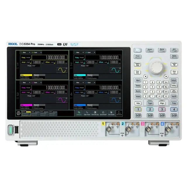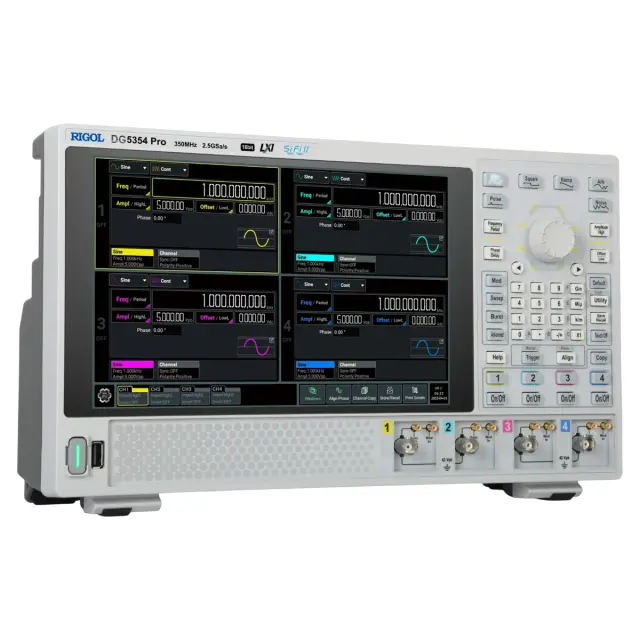 Генератор сигналов произвольной формы RIGOL DG5354 Pro является многофункциональным 4-канальным лабораторным устройством прецизионного класса с полосой пропускания до 350 МГц. Поддерживая широкий набор режимов, с опциональным увеличением их перечня, устройство способно заменить собой разнотипное испытательное оборудование, в том числе источники цифровых, тактовых, медицинских и прочих сигналов, импульсов, последовательностей, гармоник, шума, стандартных периодических и сложных функций с модуляцией и свипированием, и т.д.