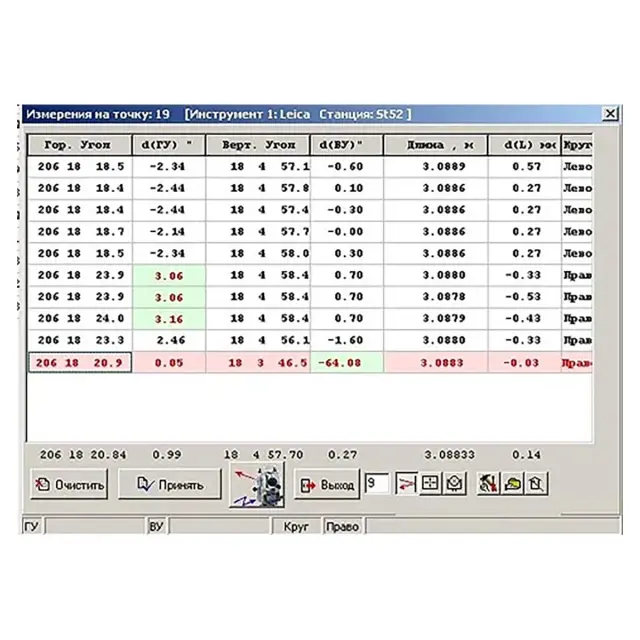 Комплекс позволяет выполнять многократные измерения при Круге Лево и Круге Право, статистически обрабатывать измерения в онлайновом режиме и исключить некачественные измерения из обработки.