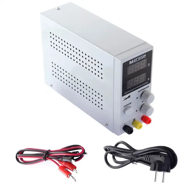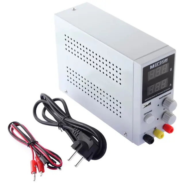 Устройство поддерживает режимы стабилизации по выбираемому уровню напряжения или по номиналу силы тока и снабжено встроенным вольтметром и амперметром с разрешением 0,1 В и 0,01 А соответственно, благодаря чему нет необходимости задействовать дополнительные измерители для контроля фактических выходных параметров.