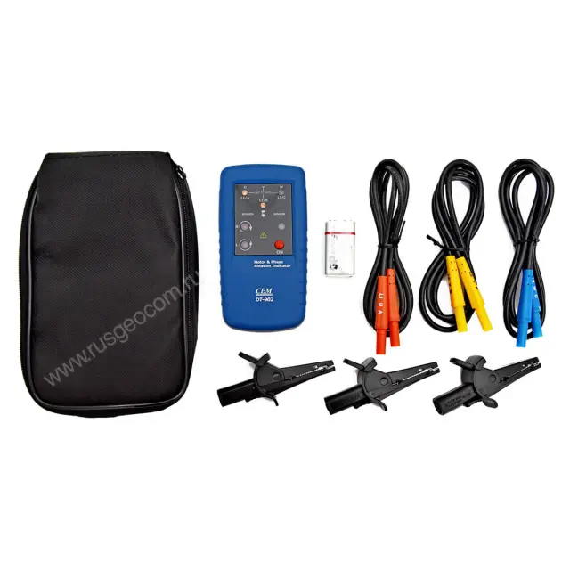 Индикатор чередования фаз CEM DT-902 представляет собой надёжный портативный прибор, предназначенный для определения последовательности фаз и направления вращения трехфазных синхронных и асинхронных двигателей. CEM DT-902 подходит для применения не только в промышленных, но и в бытовых условиях: циркулярные пилы, наждачные и сверлильные станки также имеют трёхфазные системы.