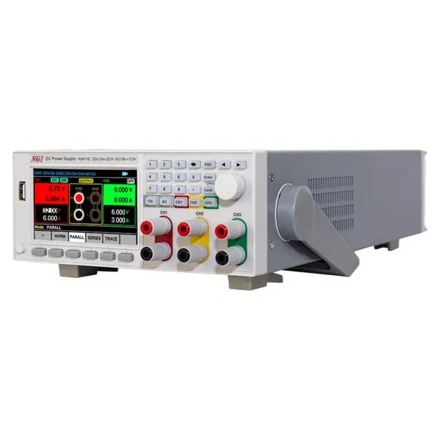 Источник питания NGI N3413P, за счет высокой точности задания выходных параметров, низкого уровня пульсаций, а также поддержки программирования и дистанционного управления по каналам LAN или RS232, позволяет реализовать разные тестовые сценарии при решении широкого круга лабораторных задач. Модель выполнена в компактном корпусе типоразмера 2U, пригодном для настольного применения и монтажа в стойку, и снабжена тремя регулируемыми каналами, с выходами с передней и задней стороны корпуса. Два из них обладают идентичными характеристиками, выдавая постоянное напряжение до 60 В при силе тока до 3 А, а третий – до 6 В и 3 А соответственно.