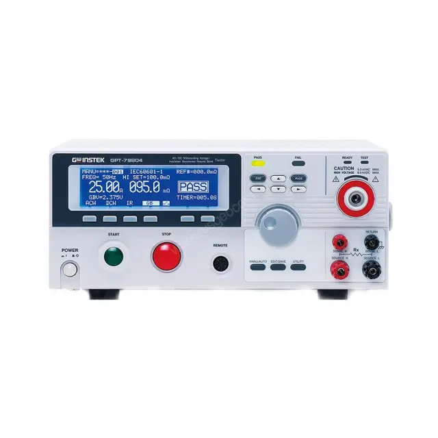 Портативный электроизмерительный прибор может использоваться для тестирования оборудования различного целевого назначения: силового, промышленного, связного, медицинского и пр. Предусмотрена возможность выполнения испытаний в ручном режиме или автоматически – по таймеру. Для каждого конкретного объекта контроля можно задавать пороговые уровни напряжения и время его нарастания, а также ограничивать общую продолжительность теста. Память на 100 ячеек позволяет пробойной установке GW Instek GPT-79803 сохранять настройки для разных тестовых процедур в виде профилей и вызывать их перед испытаниями для ускорения подготовки к работе. Для сложных испытаний можно использовать тестовые последовательности.