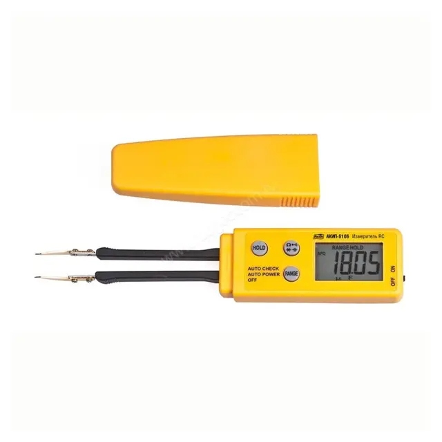 | Особенности | Современный дизайн в форме пинцета для измерения параметров SMD-компонентов (tweezers). Возможность измерения электролитических конденсаторов. |