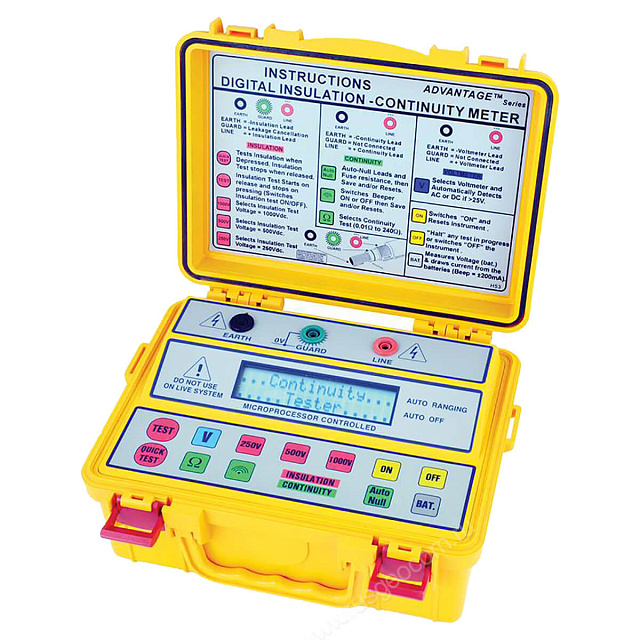 | Особенности | Автоматический разряд накопительного конденсатора. Измерение сопротивления низкоомной цепи током 200 мА. Звуковая индикация наличия опасного напряжения в тестируемой цепи. Программная установка нуля. |