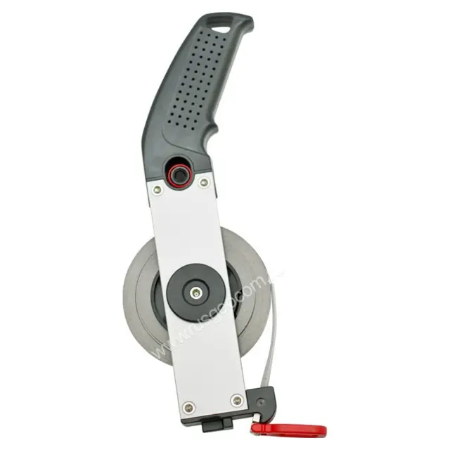 Рукоятка может перемещаться в обе стороны, что обеспечивает возможность использования рулетки BMI STANDARD 20 M как правой, так и левой рукой. Эргономичная форма и специальное прорезиненное покрытие предотвращают выскальзывание рулетки из рук и обеспечивают комфортную работу в течение долгого времени.