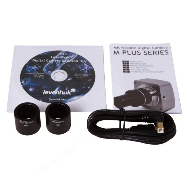 - 3 2 адаптера для микроскопов с различными диаметрами окулярной трубки (23,2–30 мм и 23,2–30,5 мм)