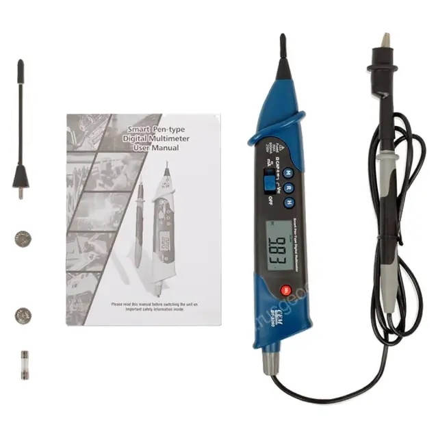 Удобство использования прибора даже в тесном пространстве достигается благодаря интеграции контрольного блока в один из щупов, выполненных в форме перьевой ручки. Эта конструктивная особенность CEM DT-3260 также облегчает работу с мультиметром на весу, так как прибор не обязательно фиксировать при осуществлении замеров.