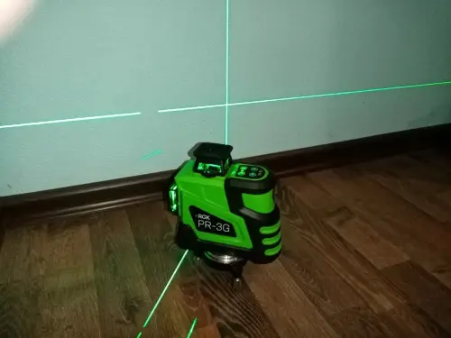 Нивелир работает отлично, на расстоянии 5 м от стены, толщина линии примерно 1мм. Что для помещения отличный вариант. Лазер зеленый и хорошо виден даже на светлых стенах. Уже покупал нивелир этой фирмы, понравился.