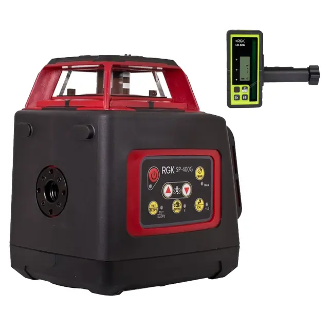 Технические характеристики Комплект: ротационный нивелир RGK SP-400G с калибровкой + миллиметровый приёмник излучения RGK LD-88G