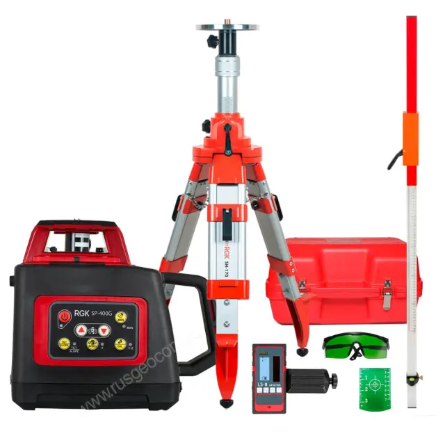 Комплект: ротационный нивелир RGK SP-400G + штатив RGK SH-170, рейка RGK LR-2