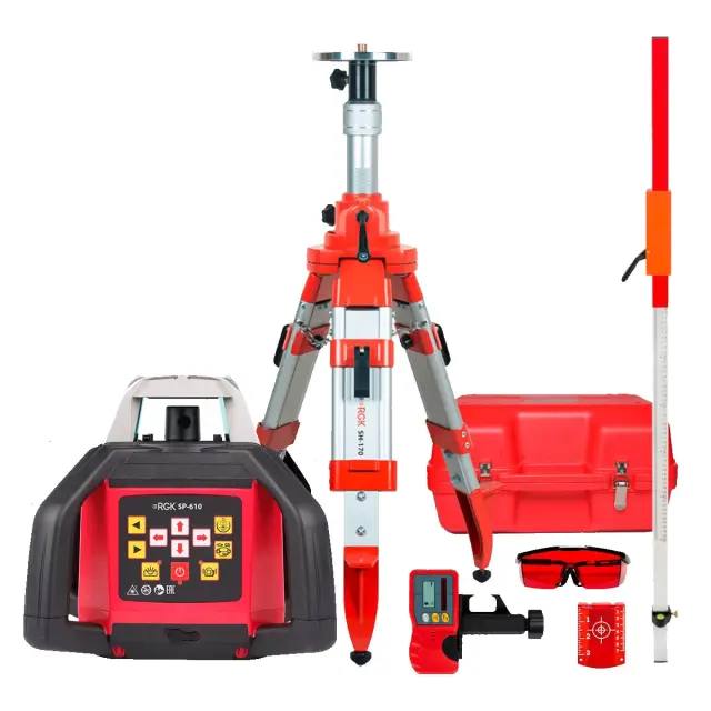 Комплект: ротационный нивелир RGK SP-610 + штатив RGK SH-170, рейка RGK LR-2