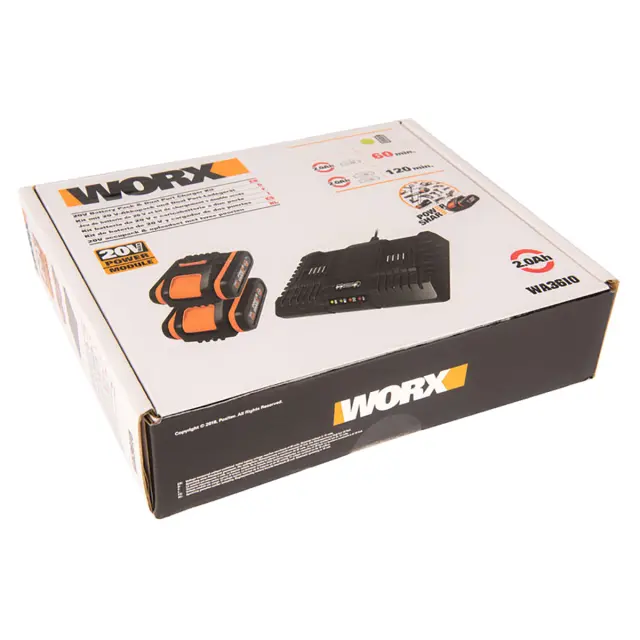 Комплект WORX WA3610: двойное зарядное устройство WA3772 + 2 АКБ 2.0 А/ч