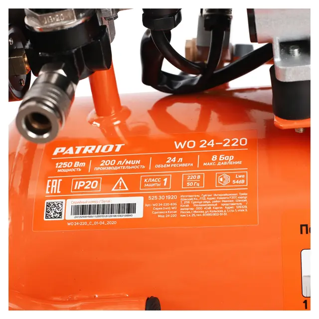 Технические характеристики Компрессор поршневой безмасляный Patriot WO 24-220