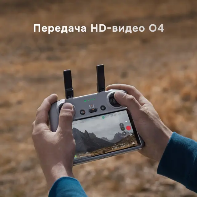 Пульт управления из комплекта DJI Air 3 Fly More Combo с DJI RC 2, работающий под управлением ОС Android с приложением DJI Fly, оснащен встроенным 5,5-дюймовым multi-touch экраном и функционирует без задействования пользовательского смартфона. Электронное руководство, доступное через меню, и контекстные подсказки позволяют быстро освоить основы работы. К основным отличиям от ранее выпускавшегося контроллера данной серии относится повышенное быстродействие за счет реализации новой аппаратной платформы, увеличенный объем внутренней памяти и более эффективная система приема-передачи с внешними антеннами и поддержкой технологии O4 HD video transmission, что улучшает надежность связи при значительном удалении летательного аппарата от оператора.
