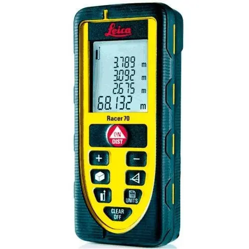 Лазерный дальномер LEICA Racer 70 — один из самых надёжных, прочных и защищённых приборов своего класса, подходящий для выполнения линейных измерений в сложных погодных условиях и на строительных площадках.
