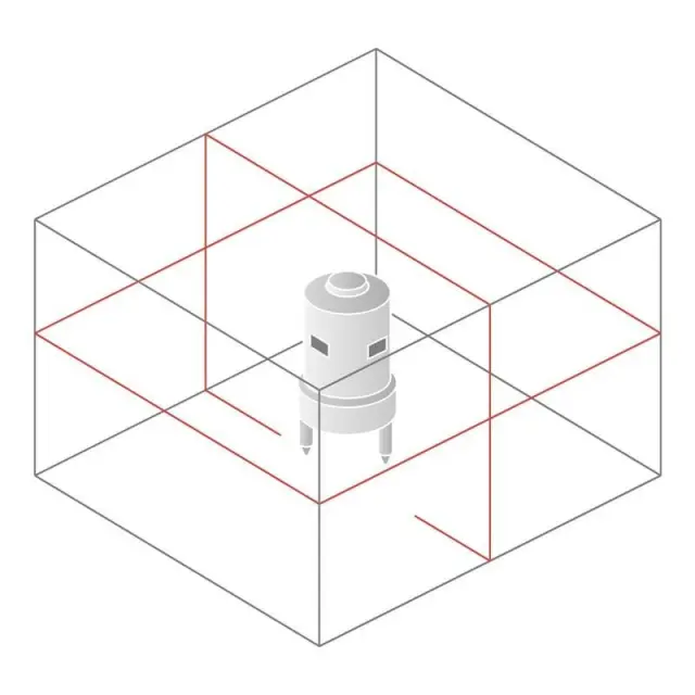 - Проецирование горизонтальной линии близко к полу с развёрткой 360° — это облегчает оценку горизонтальности поверхности и исключает необходимость перенесения опорных точек на другую плоскость.