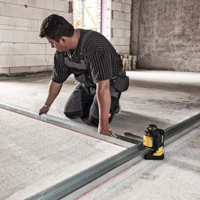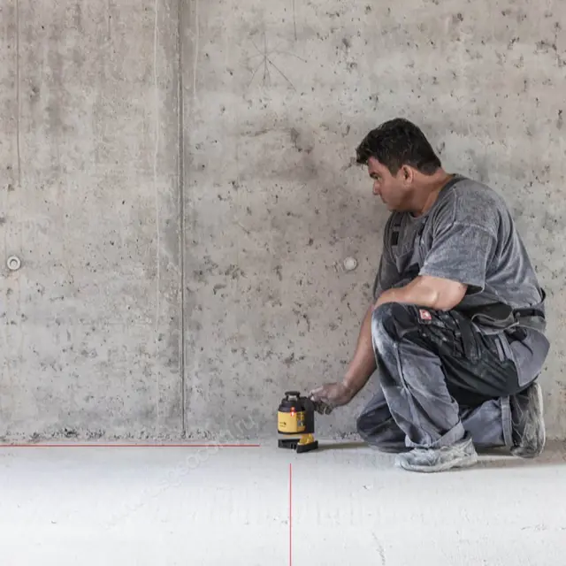 Яркий и тонкий лазерный луч отлично виден на расстоянии до 20 метров, что позволяет охватить лазерной плоскостью максимальное рабочее пространство. Например, лазерный уровень STABILA LAX 400 можно установить в центре квартиры, охватывая сразу несколько помещений для выполнения точной заливки пола на один уровень по всей жилой площади. Также прибор оснащён лазерным отвесом.